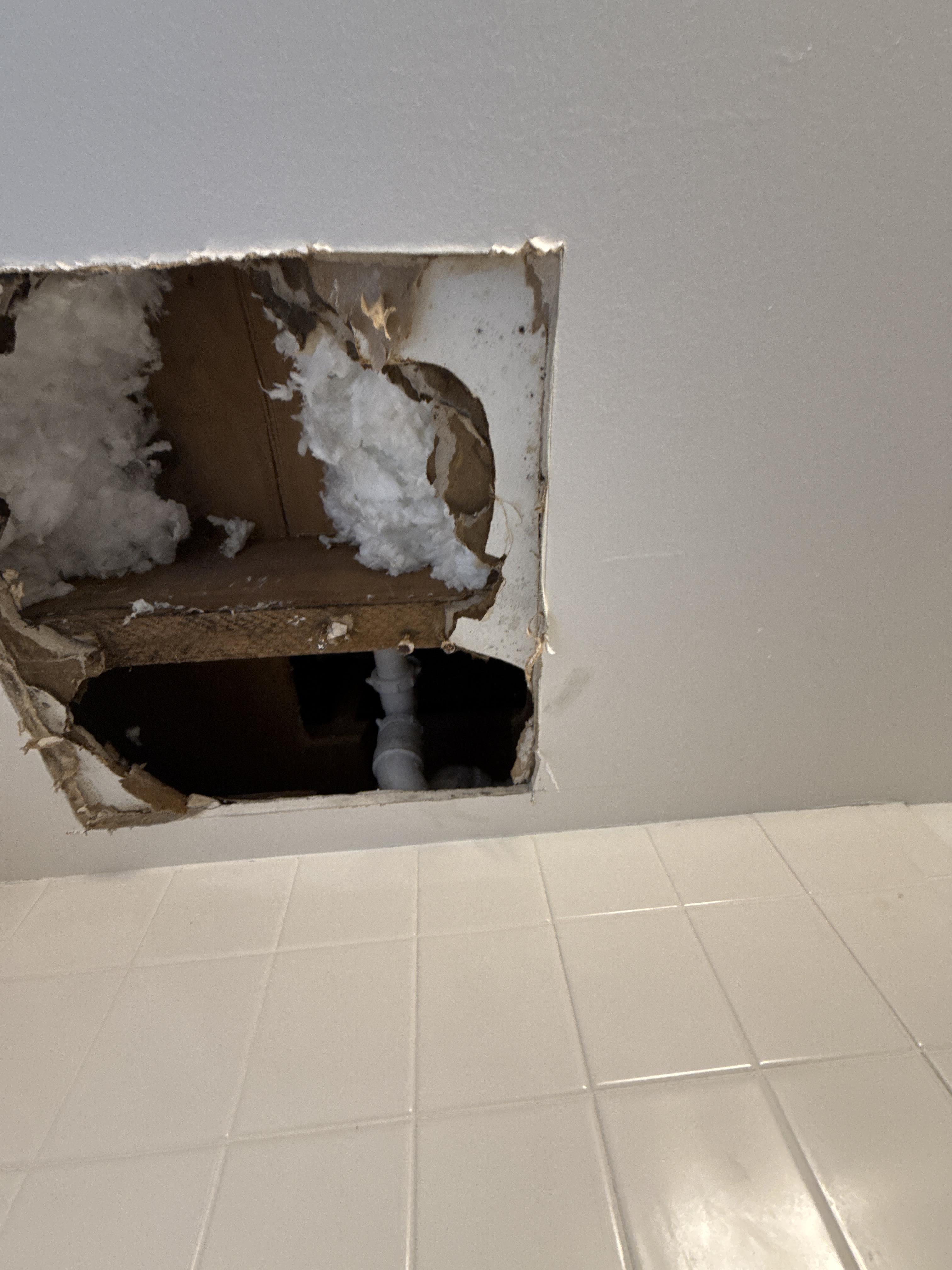 Jason M. reported water damage in his Lake Hopatcong, NJ home after noticing staining and soft drywall in the bathroom ceiling near an exterior wall. The water loss in Lake Hopatcong, NJ was caused by a plumbing leak above the ceiling, allowing water to migrate into drywall, insulation, and surrounding framing materials. PDQ performed a detailed moisture inspection in the Lake Hopatcong, NJ property using moisture meters to locate hidden water intrusion beyond the visible damage. Controlled demolition was completed to access the wet ceiling cavity and identify the full extent of the water pipe leak. Water Extraction was performed where moisture was present, and saturated insulation was removed to prevent further damage. This Lake Hopatcong, NJ water damage cleanup was documented and approved as part of an insurance-covered water damage claim.