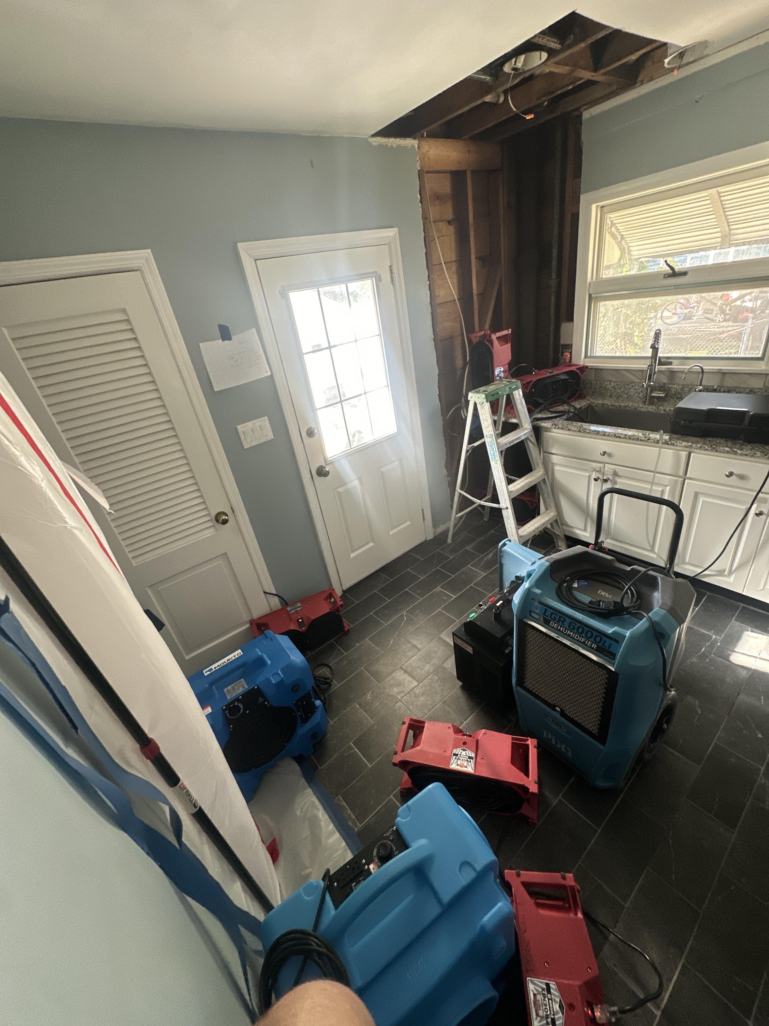 After the source was addressed, PDQ initiated professional Structure Drying as part of the water damage restoration process in Madison, NJ. Commercial air movers and dehumidifiers were strategically placed to dry the exposed framing and stabilize moisture levels throughout the Madison, NJ residence. Technicians conducted daily moisture monitoring to ensure proper drying and prevent secondary issues such as mold growth or structural deterioration. Antimicrobial treatments were applied to exposed wood and surrounding surfaces as a preventative measure following the plumbing leak. Special attention was given to adjacent ceiling and wall areas to ensure no hidden moisture remained in the Madison, NJ home. The Madison, NJ water damage restoration was completed once final moisture readings confirmed the structure was fully dry and ready for reconstruction.