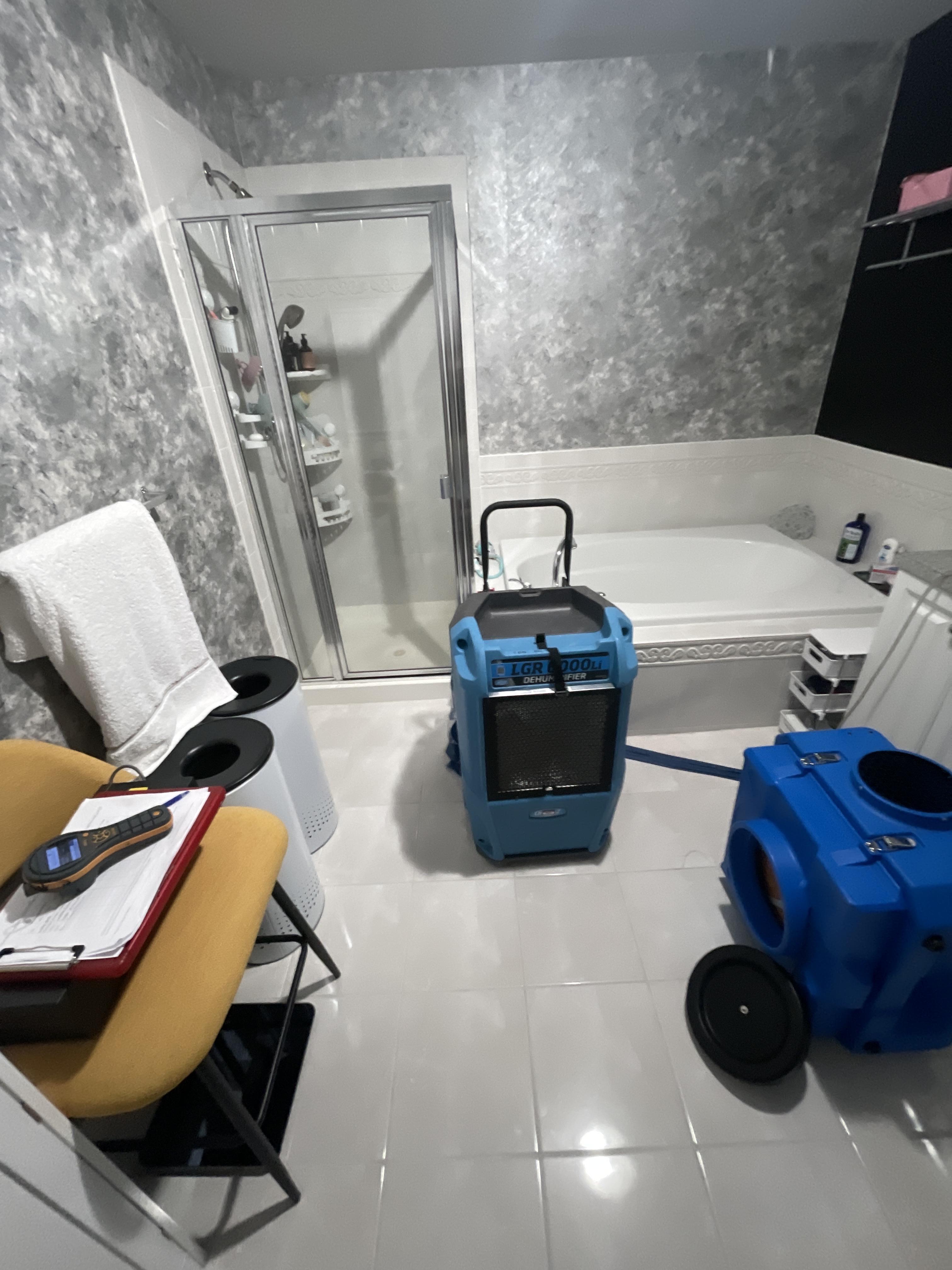 The Wayne, NJ water damage restoration process continued with structural drying, dehumidification, and targeted air movement to properly dry wet wall cavities and surrounding materials. Specialized drying equipment was installed to address trapped moisture behind the tiled surface and prevent mold growth in the Wayne, NJ property. Daily moisture monitoring ensured drying goals were achieved and that no secondary damage developed. Coordination with plumbing repairs confirmed the source of the leak was fully resolved before mitigation was completed. The water damage loss in Wayne, NJ was covered by insurance, and all documentation was provided to support the water damage insurance claim. Final moisture readings confirmed the area was dry and ready for reconstruction following professional water damage cleanup in Wayne, NJ.