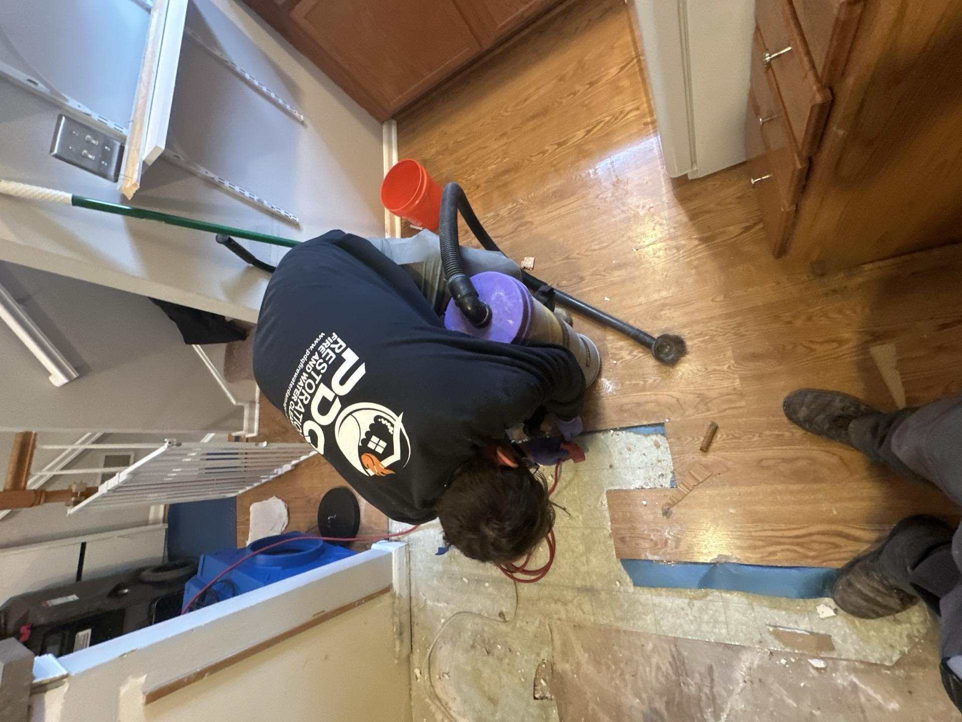 Christopher J. contacted PDQ Fire & Water Damage Restoration after extensive water damage was discovered in his Chatham, NJ home due to a burst pipe located beneath the kitchen flooring. The sudden water pipe break released a steady flow of water that spread under the finished floor, causing wood floor water damage, wet insulation, and saturation of the subfloor throughout the Chatham, NJ property. The homeowner noticed soft spots and moisture intrusion near the plumbing lines, indicating hidden water damage below the surface. Our team responded to the Chatham, NJ location to perform emergency water extraction and remove affected flooring materials to access trapped moisture. The cause of loss was identified as a plumbing failure tied into the main water line, and the damage was covered by insurance. All documentation for the Chatham, NJ water damage insurance claim was completed during the initial site visit.