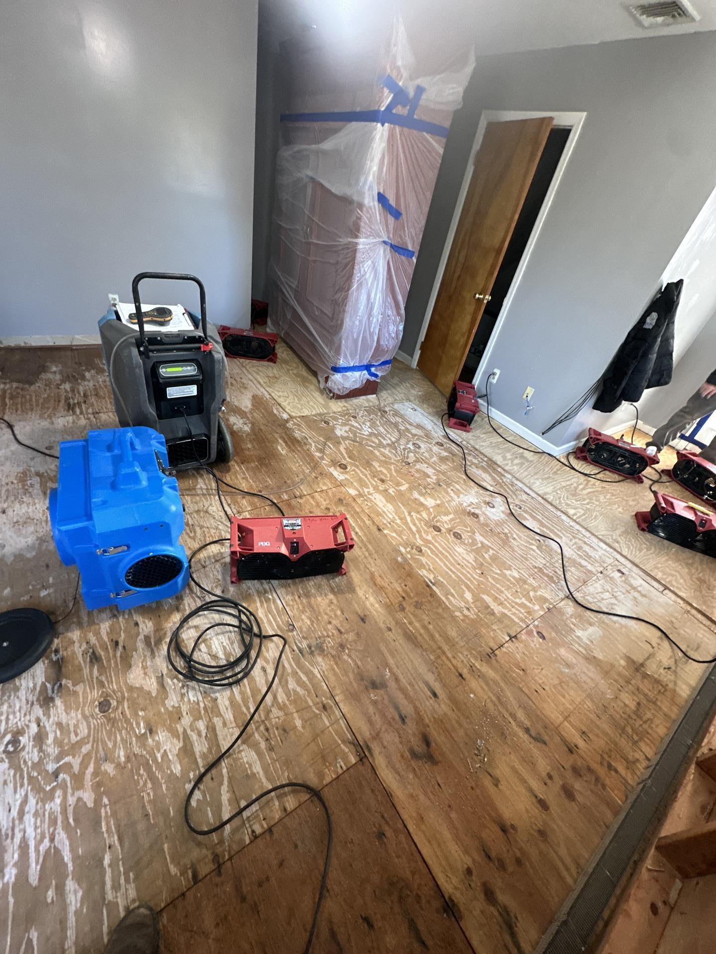 After demolition, technicians in Lake Hopatcong, NJ installed air movers and dehumidifiers to begin structural drying of the subfloor and framing. Daily moisture monitoring was conducted to track drying progress and confirm that moisture levels returned to acceptable standards. The scope of work addressed common issues associated with water pipe breaks, including wet insulation and wood floor water damage. Containment measures were maintained to protect unaffected areas of the home during the drying process in Lake Hopatcong, NJ. Once drying goals were met, the area was cleaned and prepared for future repairs and flooring replacement. This comprehensive water damage mitigation and structure drying service restored safe conditions to the property in Lake Hopatcong, NJ following the unexpected water loss.