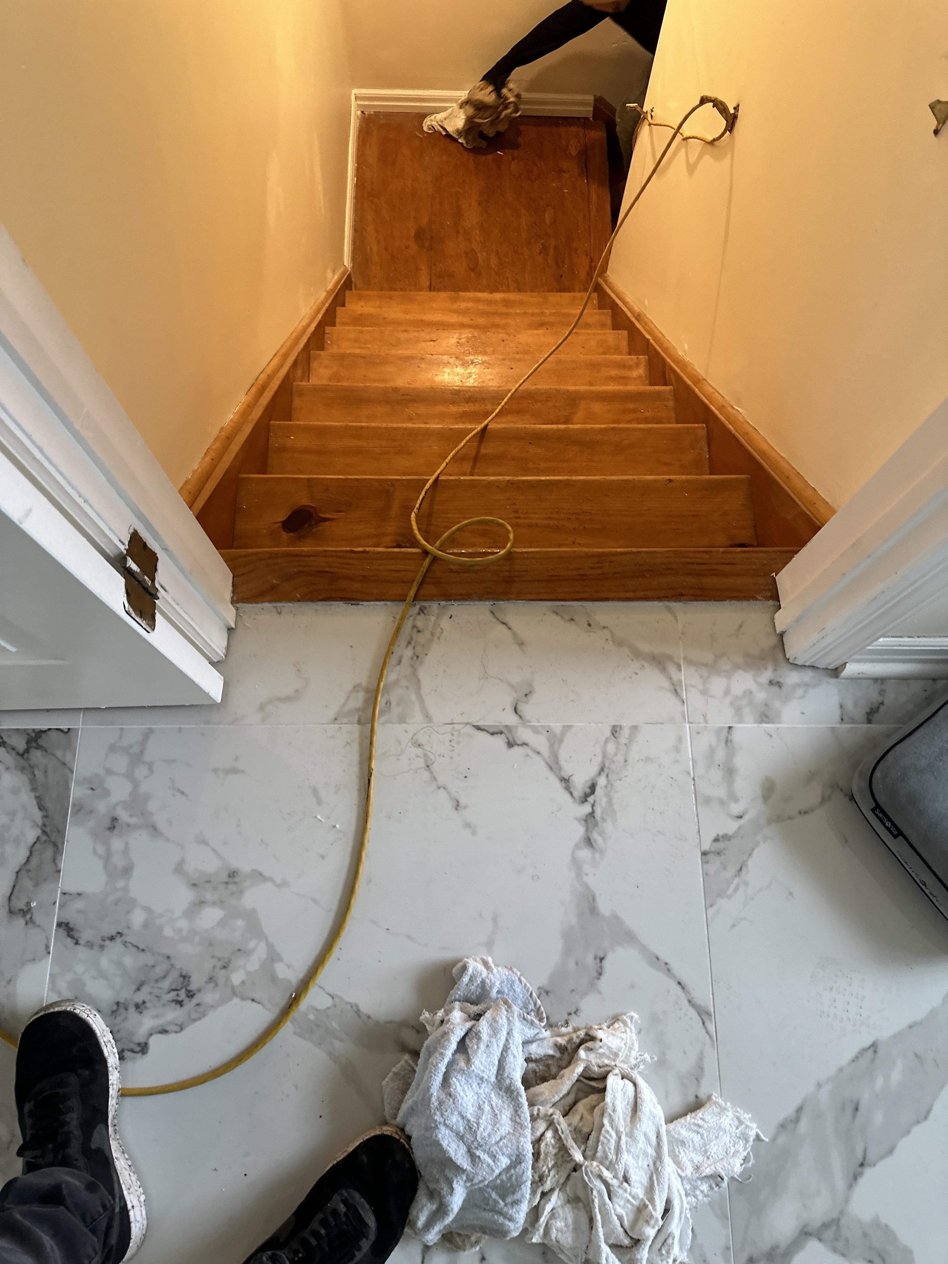 Steven H. contacted PDQ Fire & Water Damage Restoration after water damage developed along the basement stairwell of his Riverdale, NJ home due to a plumbing leak from an upper-level bathroom. The loss occurred when a loose supply line connection allowed water to drip down through the wall cavity and collect at the base of the stairs, saturating the wood steps and lower landing. In Riverdale, NJ, hidden leaks like this can lead to wood floor water damage, stained stair treads, and moisture intrusion behind drywall if not addressed quickly. Our team responded promptly to the Riverdale, NJ property to assess the extent of the damage and begin immediate Water Damage Restoration services. Moisture meters were used to detect elevated moisture levels in the stair stringers, subfloor, and adjacent wall framing. The homeowner’s insurance policy covered the water damage in Riverdale, NJ, including mitigation, Structure Drying, and repairs related to the plumbing leak.