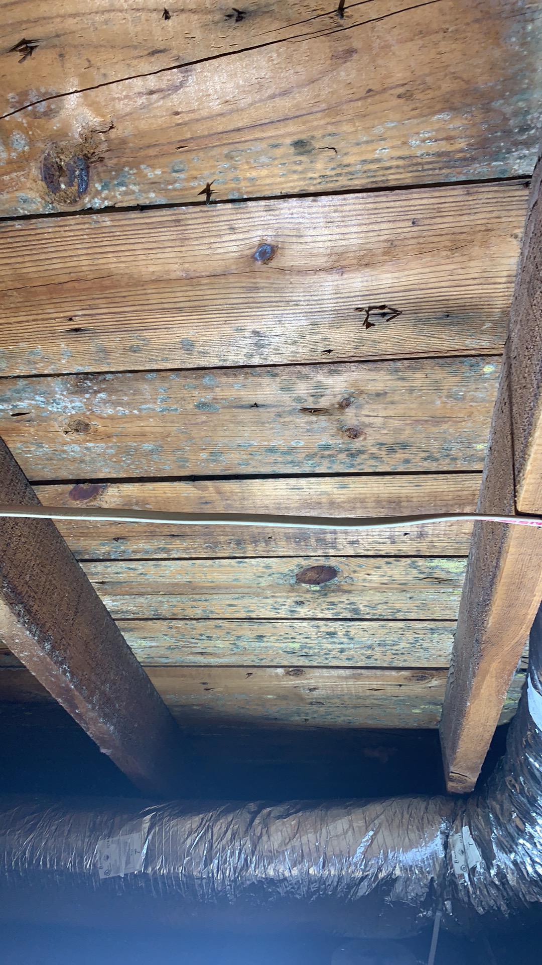 Michael R. in Kinnelon, NJ discovered visible mold growth on the exposed wooden roof decking and ceiling joists in the attic area of his home in Kinnelon, NJ. The mold contamination in Kinnelon, NJ developed after a prolonged roof leak allowed moisture to accumulate in the attic space, creating ideal conditions for structural mold growth on the wood sheathing and framing materials. During the mold inspection in Kinnelon, NJ, technicians identified widespread spotting consistent with attic mold colonies forming across multiple sections of the roof decking. PDQ performed Mold Inspections & Remediation services in Kinnelon, NJ, documenting the extent of microbial growth and elevated humidity levels trapped within the attic cavity. The mold remediation process in Kinnelon, NJ required containment barriers and negative air filtration to prevent mold spores from spreading into the living areas of the home. Technicians performed detailed HEPA vacuuming and antimicrobial treatment to remove structural mold and surface contamination from the attic wood framing and decking materials in Kinnelon, NJ.