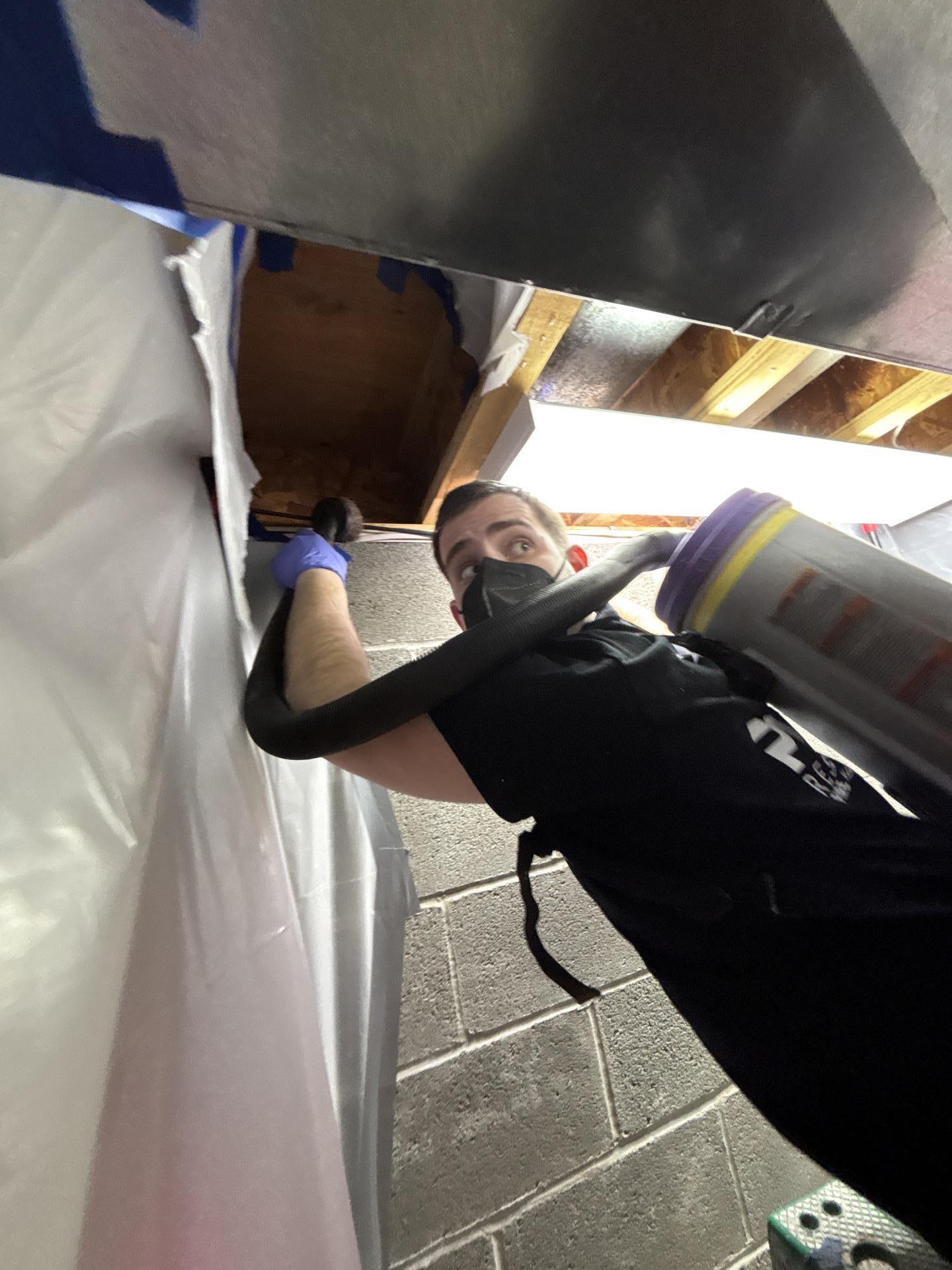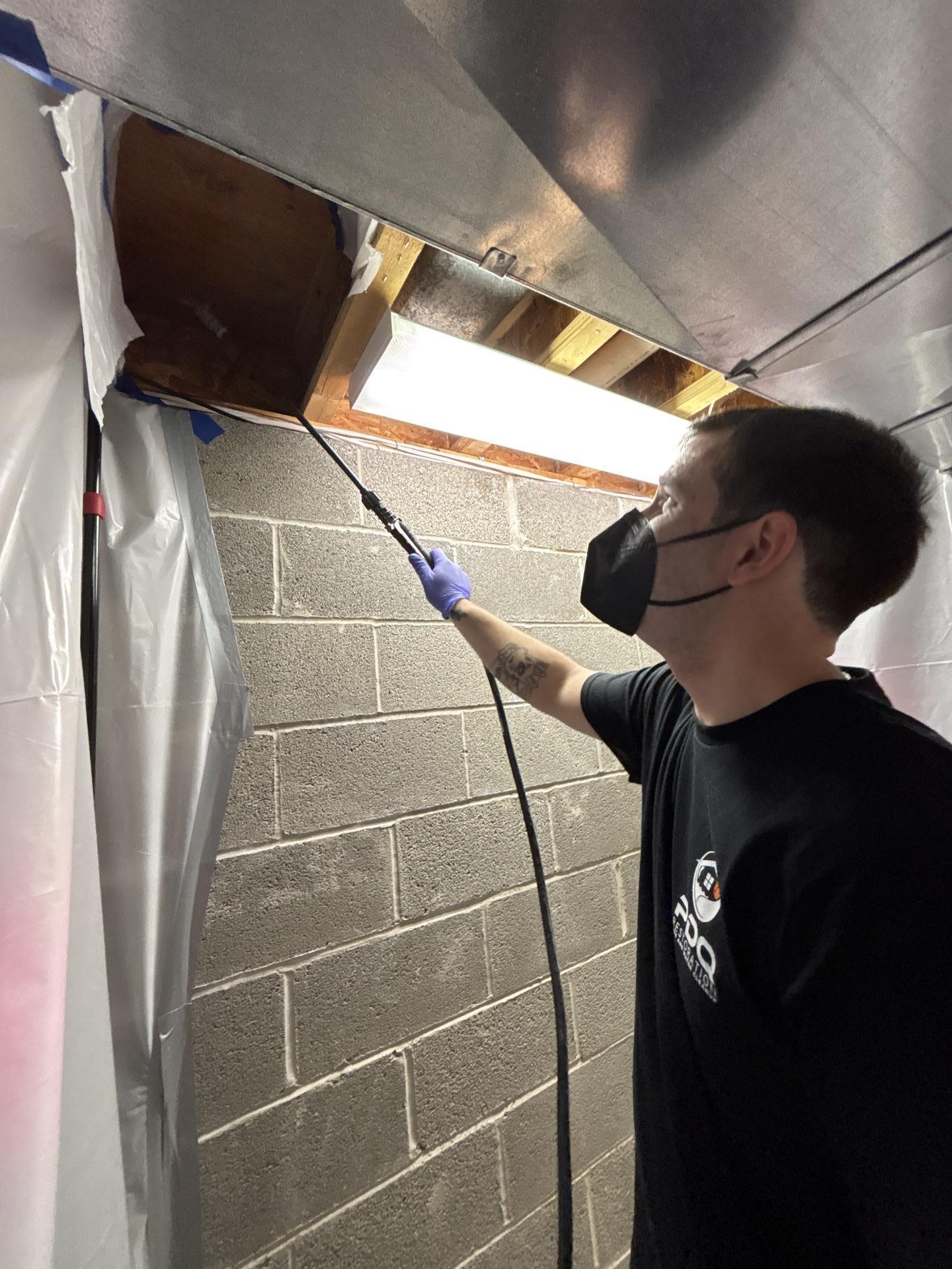 The PDQ restoration team began the water damage mitigation process in Kenvil, NJ by establishing a controlled containment area around the exposed ceiling cavity. Technicians used professional drying equipment and targeted airflow to remove trapped moisture from the structural framing and surrounding building materials. Specialized injection drying systems and commercial air movers were strategically placed to promote airflow between the floor joists and accelerate the structural drying process in Kenvil, NJ. Dehumidifiers were also installed to reduce ambient humidity levels and prevent secondary damage such as mold growth or structural mold contamination. Throughout the drying process, technicians performed daily moisture readings to monitor the progress of the water damage restoration work in Kenvil, NJ. After several days of controlled drying and monitoring, the affected structural materials returned to safe moisture levels, completing the water damage cleanup and structural drying project in Kenvil, NJ.