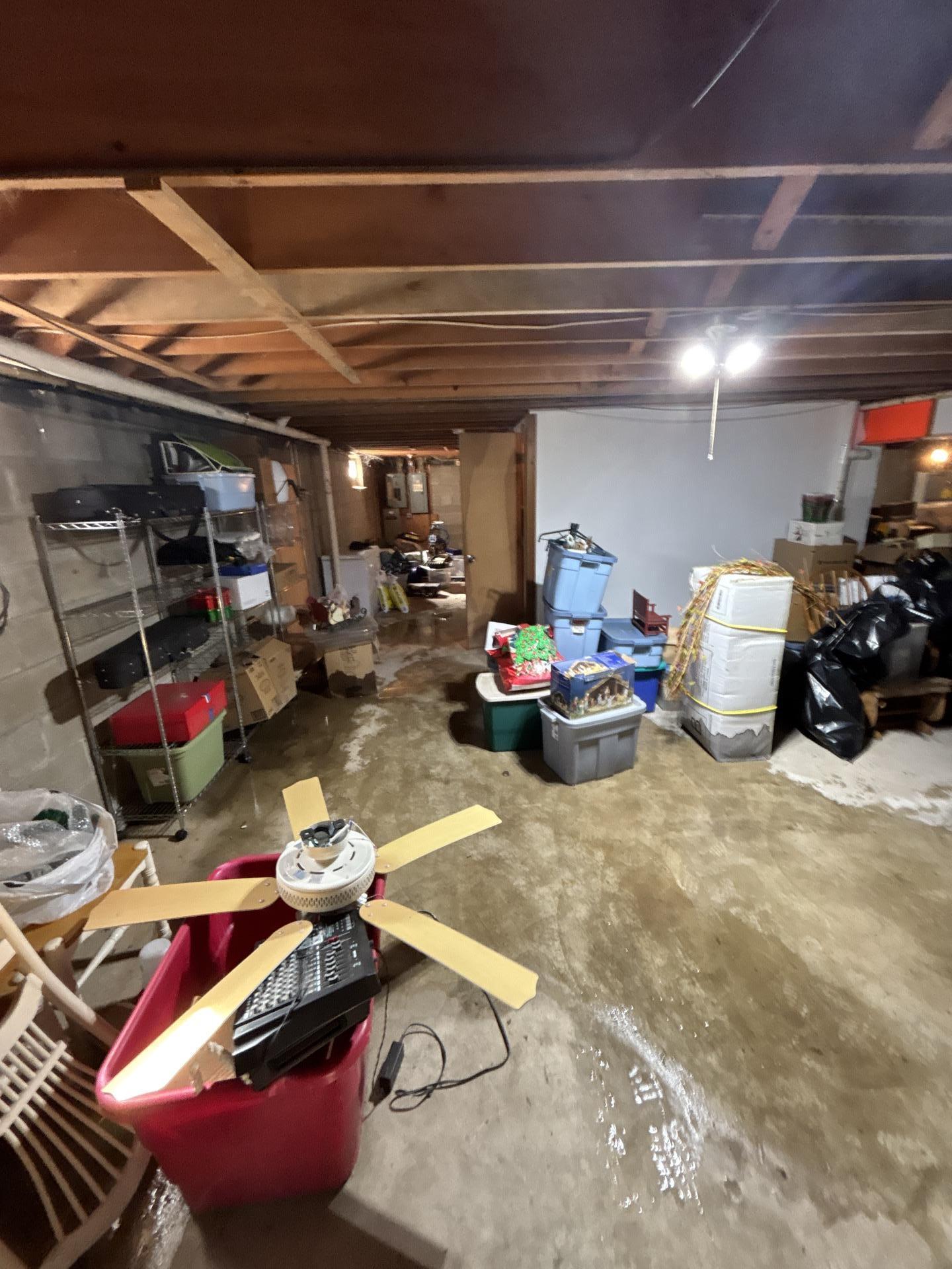 The PDQ restoration team began the water damage mitigation process in Picatinny Arsenal, NJ with immediate water extraction to remove standing water from the basement floor. Technicians carefully moved and elevated stored belongings to prevent additional moisture absorption while identifying areas where water had migrated beneath containers and shelving. Commercial air movers and industrial dehumidifiers were strategically installed throughout the basement to accelerate evaporation and support the structural drying process in Picatinny Arsenal, NJ. Moisture readings were taken along the concrete floor, foundation walls, and nearby structural materials to ensure the water damage in Picatinny Arsenal, NJ was being properly addressed. Special attention was given to preventing mold growth and structural mold development, which can occur quickly in damp basement environments. After several days of controlled drying and moisture monitoring, the basement environment returned to normal moisture levels, completing the flood damage cleanup and water damage restoration project in Picatinny Arsenal, NJ.