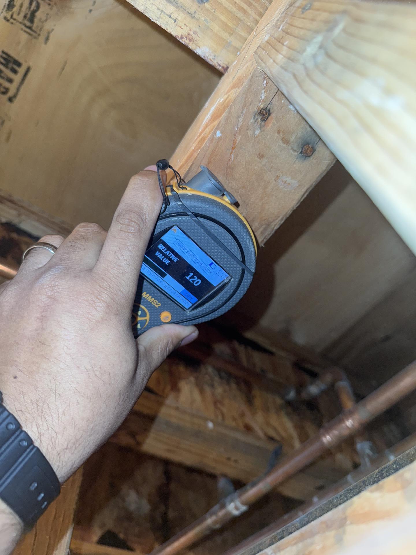 The PDQ restoration team began the water damage mitigation process in Boonton, NJ by carefully opening sections of the ceiling to expose the affected structural materials and allow proper airflow for drying. Technicians used specialized moisture detection equipment to monitor the condition of the wood framing, ceiling sheathing, and surrounding structural components during the drying process. Commercial air movers and industrial dehumidifiers were strategically installed to accelerate evaporation and support the structure drying process in Boonton, NJ. Additional inspections were conducted around the plumbing lines to ensure the leak source had been fully repaired and no additional moisture was present. Daily moisture readings were recorded to confirm that the structural wood materials were steadily returning to normal levels throughout the drying process in Boonton, NJ. After several days of controlled drying and monitoring, the ceiling cavity and surrounding structural materials reached safe moisture levels, completing the water damage cleanup and structural drying project in Boonton, NJ.