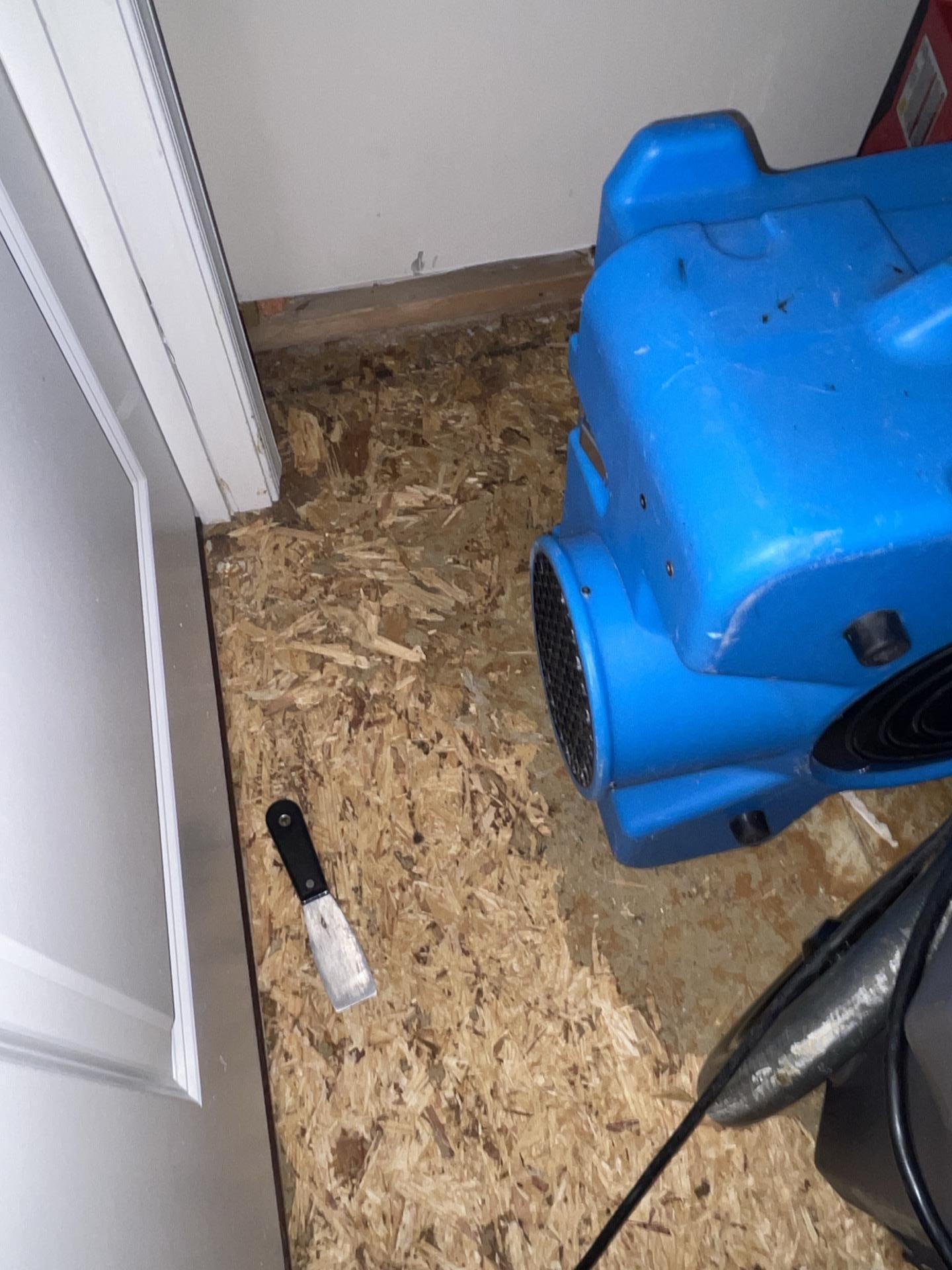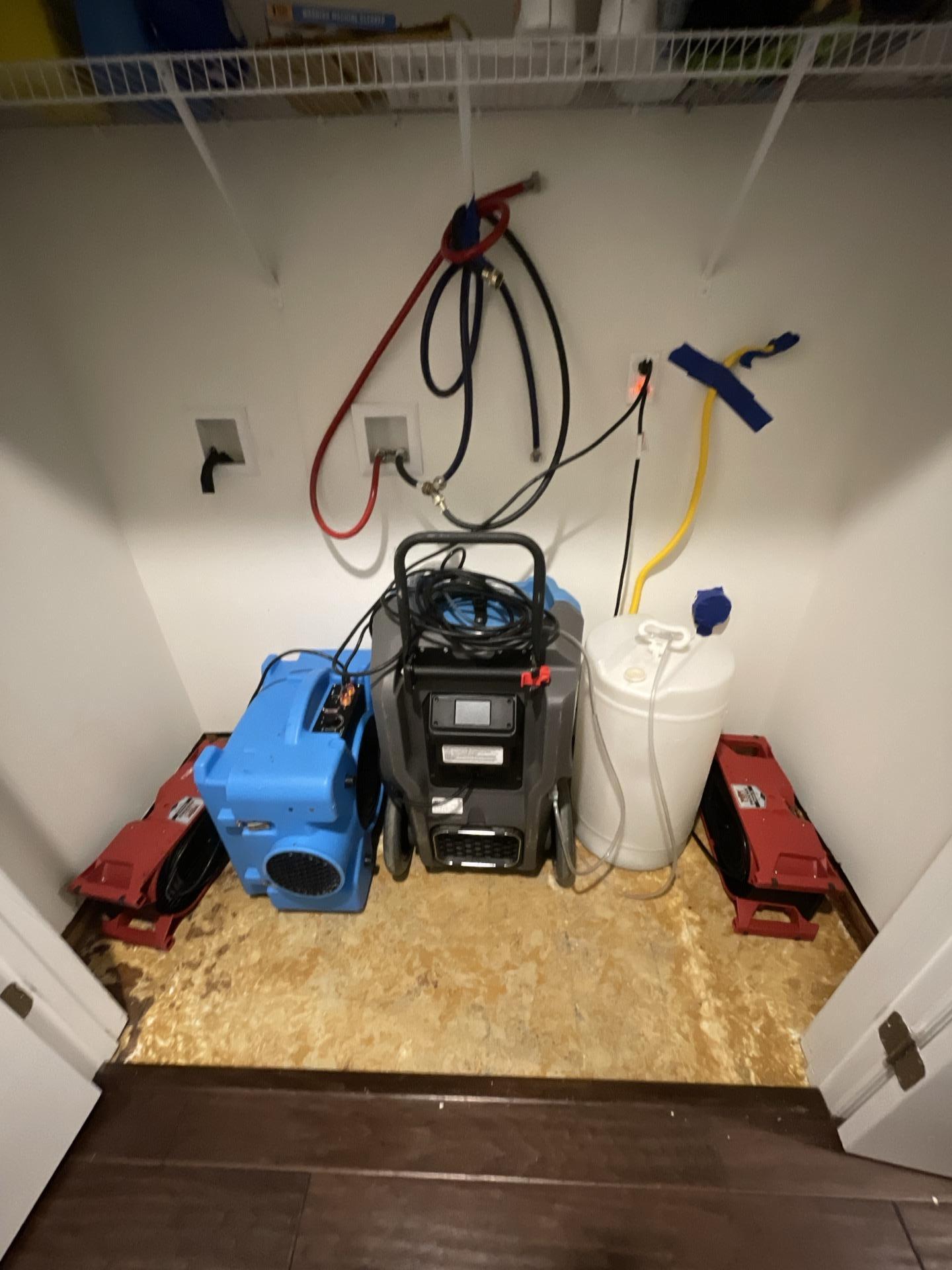 The PDQ restoration team began the water damage mitigation process in Kinnelon, NJ by removing sections of the damaged flooring to expose the saturated subfloor and allow proper airflow during drying. Commercial air movers and industrial dehumidifiers were strategically installed throughout the laundry area to accelerate evaporation and support the structural drying process in Kinnelon, NJ. Technicians also set up targeted drying equipment around the appliance hookups to address moisture trapped behind the wall and beneath the washing machine connections. Antimicrobial disinfecting treatments were applied to the exposed subfloor and lower wall materials to help prevent mold growth and structural mold contamination following the water intrusion. Moisture levels were monitored daily using professional moisture meters to verify the progress of the drying process throughout the Kinnelon, NJ home. After several days of controlled structural drying and environmental stabilization, the affected materials returned to safe moisture levels, successfully completing the water damage restoration project in Kinnelon, NJ.