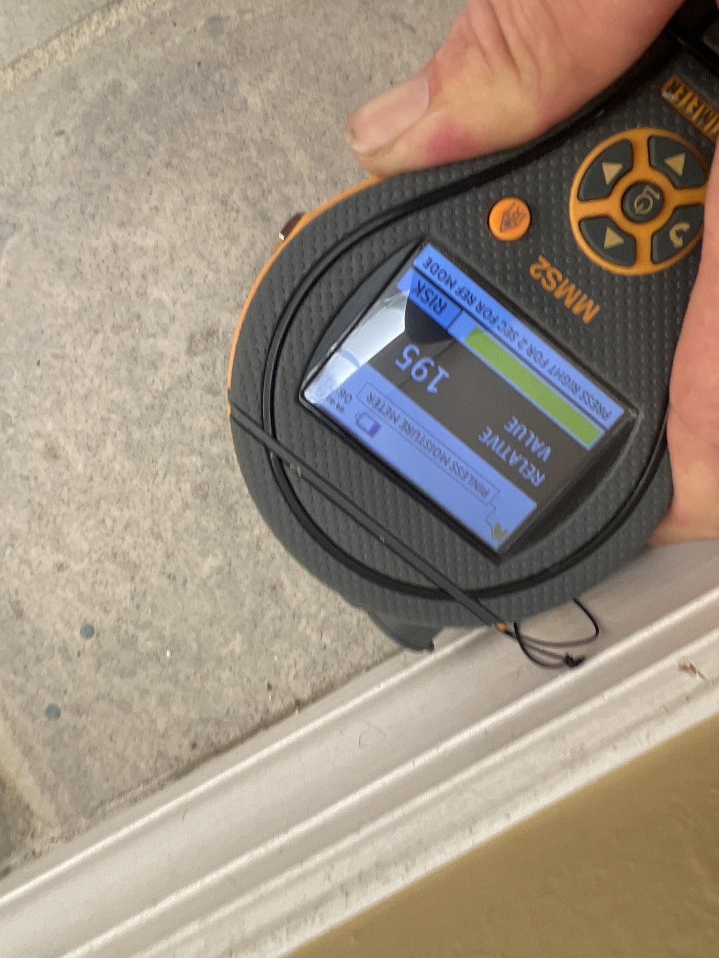 Eric L. contacted PDQ Fire & Water Damage Restoration after noticing elevated moisture levels along the concrete flooring near a doorway in the basement of his home in Montville, NJ. The issue began when groundwater seeped through the foundation and slab during a period of heavy rain, allowing moisture to migrate across the concrete surface. Over time, the water intrusion created damp conditions along the floor edges and foundation walls, a common type of basement water damage frequently seen in homes throughout Montville, NJ. Our technicians arrived at the property in Montville, NJ and performed a detailed moisture inspection using professional pinless moisture meters to evaluate the extent of the moisture infiltration. Elevated readings along the concrete slab and base of the wall confirmed that water had penetrated the flooring system in the Montville, NJ basement. Because basement seepage events can lead to structural moisture problems in Montville, NJ homes, immediate water damage mitigation and structure drying was required.