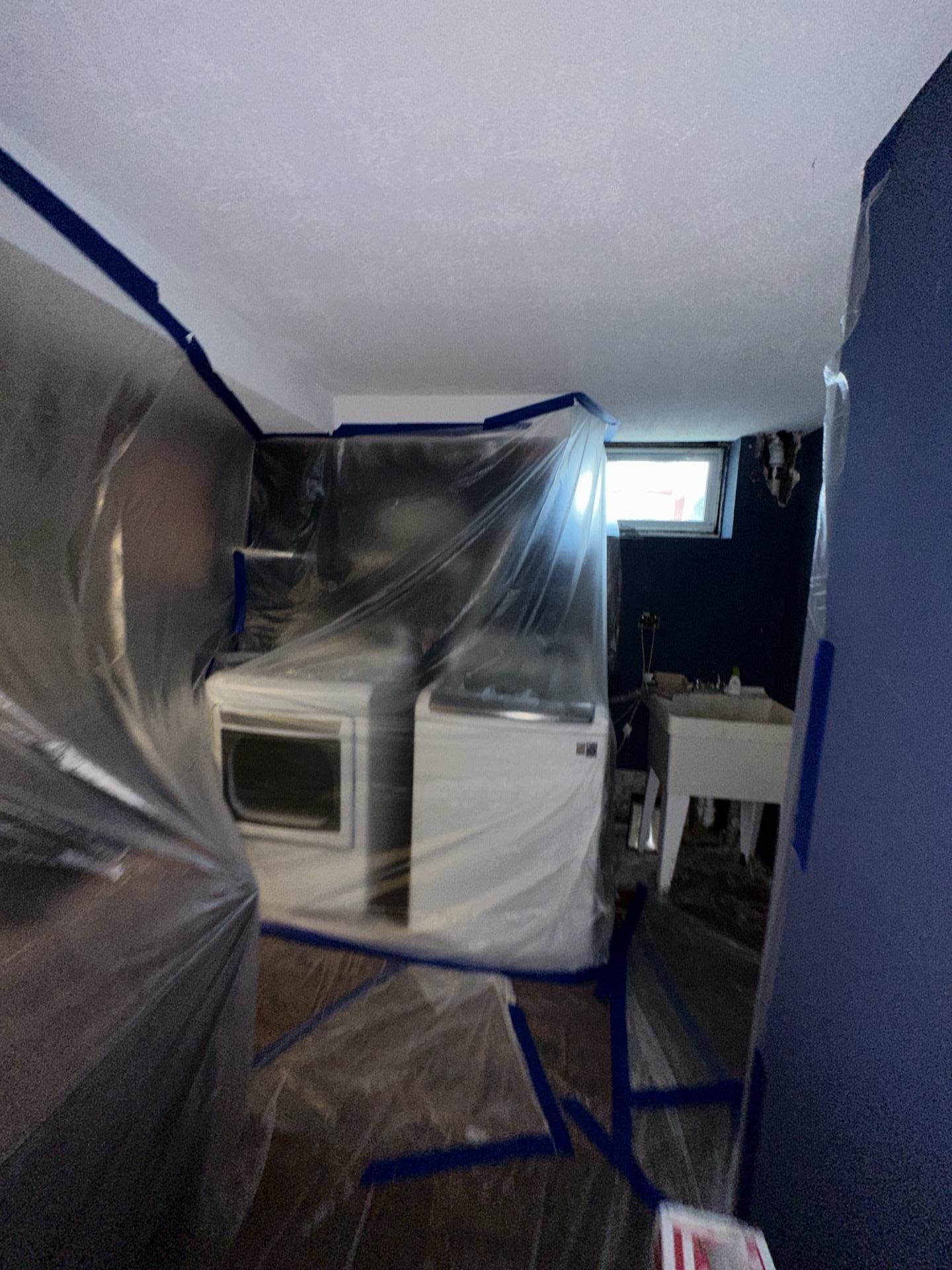 PDQ technicians began the water damage restoration process in Mount Olive, NJ by setting up containment barriers and protective plastic sheeting to isolate the affected laundry area. This containment system helped control airflow and prevent moisture and contaminants from spreading to other parts of the Mount Olive, NJ basement during the drying process. Commercial air movers, professional dehumidifiers, and specialized drying equipment were installed to accelerate evaporation and remove excess humidity from the environment in Mount Olive, NJ. Technicians continuously monitored moisture levels in the flooring, walls, and structural materials using advanced moisture detection equipment to ensure proper structural drying throughout the Mount Olive, NJ property. Daily moisture readings confirmed steady progress as the drying equipment removed trapped moisture from the affected materials. After several days of controlled drying and environmental stabilization, the basement structure returned to normal moisture levels, successfully completing the water damage cleanup and restoration project in Mount Olive, NJ.