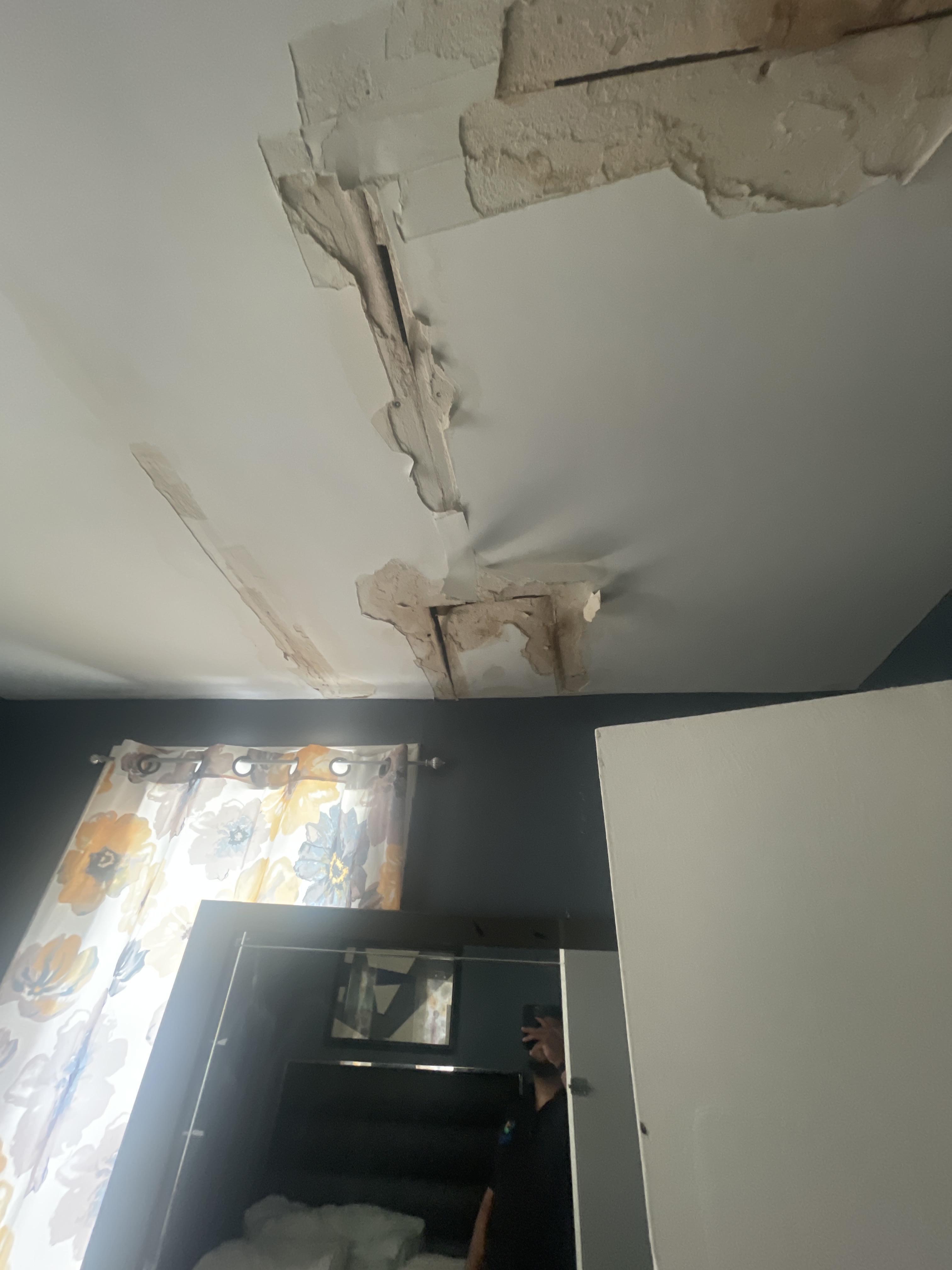Kevin T. contacted PDQ Fire & Water Damage Restoration after noticing severe water damage in his Rockaway, NJ home caused by a roof leak that allowed water to infiltrate the ceiling over time. The ongoing Roof Leak led to saturated drywall, bubbling paint, and structural ceiling damage throughout the affected area in Rockaway, NJ. Upon arrival at the Rockaway, NJ property, technicians identified compromised ceiling materials and immediately began controlled demolition to remove unsafe, water-damaged drywall. Emergency water damage cleanup procedures were implemented, including moisture detection and containment to prevent further spread within the Rockaway, NJ residence. High-powered air movers and commercial dehumidifiers were strategically placed to begin the structure drying process and eliminate trapped moisture. Wet insulation and deteriorated ceiling sections were removed to reduce the risk of mold growth and secondary damage. This comprehensive water damage restoration effort in Rockaway, NJ addressed both visible ceiling collapse and hidden moisture intrusion.