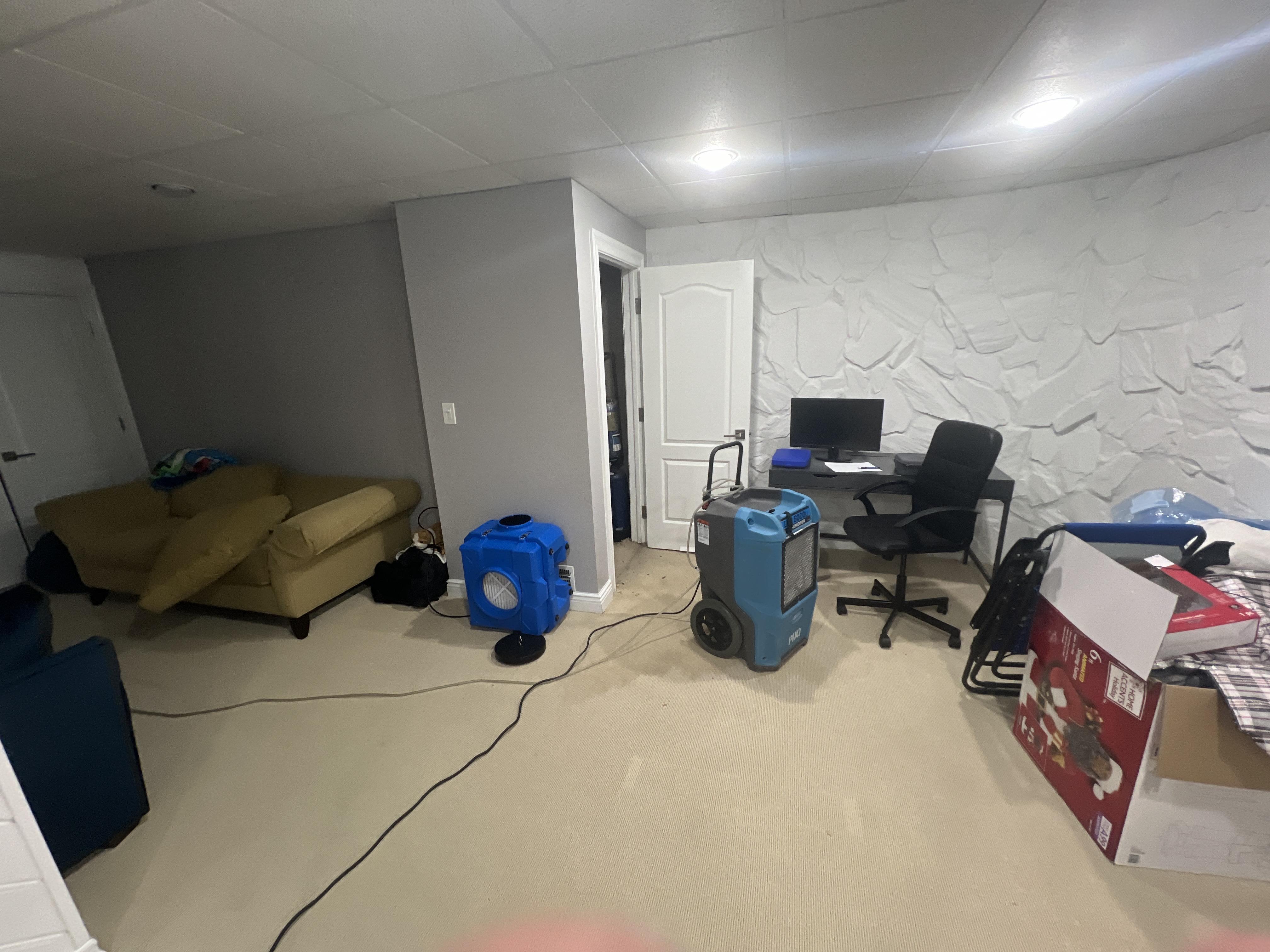 Steven P. contacted PDQ Fire & Water Damage Restoration after discovering water damage in his finished basement in Chester, NJ caused by a malfunctioning HVAC discharge line that had been leaking over time. The slow HVAC Discharge Line Repair issue allowed water to accumulate beneath the carpet and padding, leading to widespread moisture saturation throughout the Chester, NJ basement. Upon arrival at the Chester, NJ property, technicians conducted a full moisture inspection and mapping process to identify all affected areas, including hidden moisture beneath flooring and along baseboards. Emergency water extraction was performed to remove excess moisture from the carpeted surfaces in the Chester, NJ home. Containment measures were established where necessary, and high-powered air movers and commercial dehumidifiers were strategically placed to begin the structure drying process. Wet carpet padding and compromised materials were identified and removed to prevent further deterioration and microbial growth in the Chester, NJ property. This water damage restoration project in Chester, NJ focused on thorough drying and mitigation of all affected structural components.