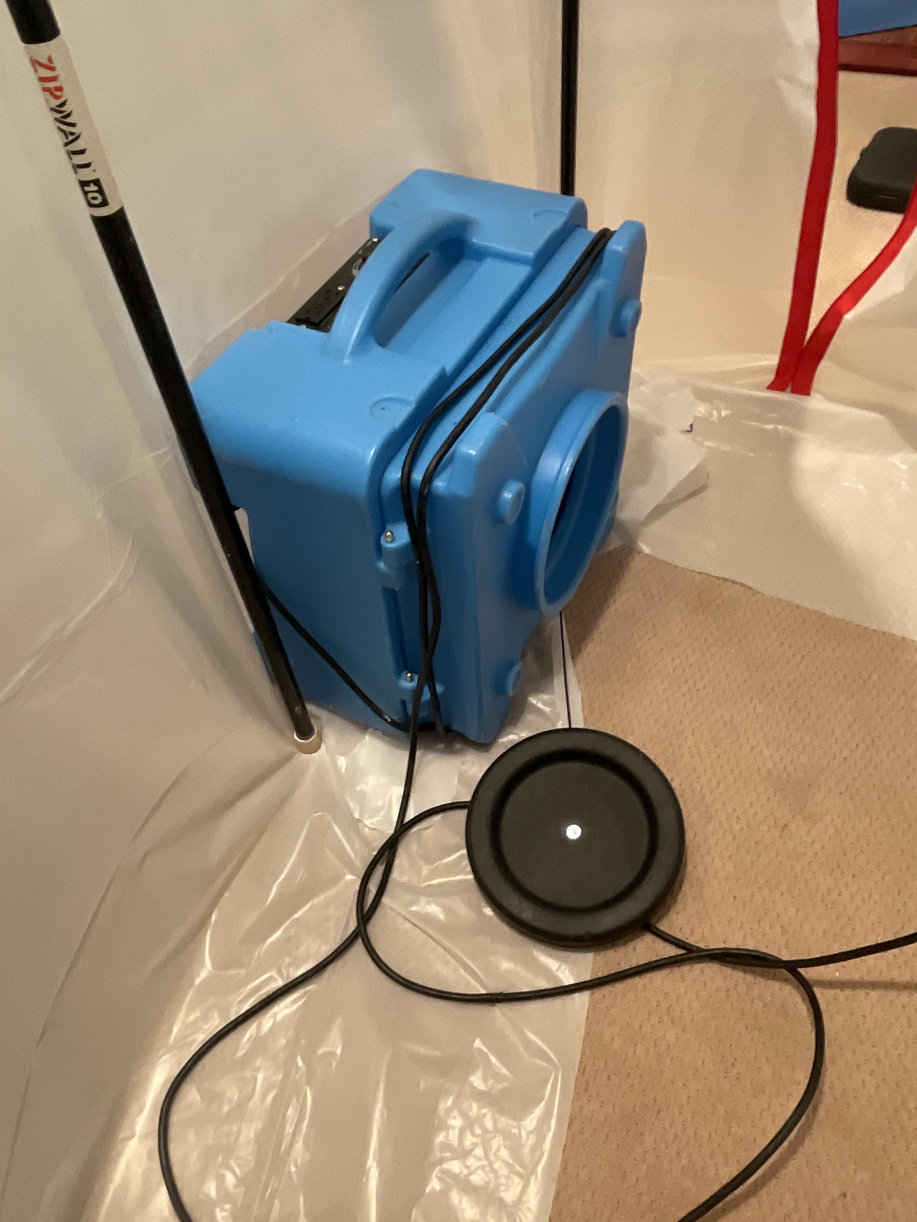 Laura B. contacted PDQ Fire & Water Damage Restoration after discovering water damage in her Kinnelon, NJ basement caused by a slow carpet saturation issue linked to a minor but continuous appliance leak. The Appliance Leak Cleanup situation allowed moisture to seep into the carpet and padding, spreading across the finished basement area in Kinnelon, NJ. Upon arrival at the Kinnelon, NJ property, technicians performed a detailed moisture inspection and mapping process to identify the full extent of water intrusion beneath the flooring. Containment barriers were set up to isolate the affected area in Kinnelon, NJ, as shown, preventing moisture from impacting surrounding rooms. Emergency water extraction and targeted drying efforts were immediately initiated to stabilize the environment. High-powered air movers and commercial-grade dehumidifiers were strategically placed to accelerate evaporation and remove trapped moisture from the carpet and subfloor in the Kinnelon, NJ home. This water damage restoration project in Kinnelon, NJ focused on thorough drying and preventing further structural damage.