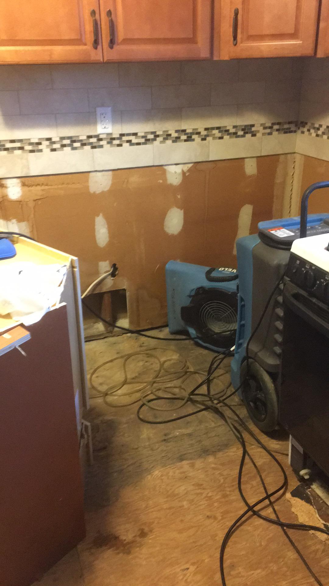 Anthony G. contacted PDQ Fire & Water Damage Restoration after experiencing significant water damage in the kitchen of his Montville, NJ home. The cause of the loss was a dishwasher supply line failure, which led to an appliance leak cleanup situation that released water beneath the cabinets and across the subfloor. This type of water damage in Montville, NJ often goes unnoticed until materials like cabinetry, drywall, and flooring begin to show signs of saturation and deterioration. Upon arrival, technicians in Montville, NJ performed a detailed inspection and moisture mapping, identifying water intrusion behind lower cabinets and into adjacent wall cavities. Immediate water extraction was initiated, followed by the removal of toe kicks and selective demolition to access trapped moisture. High-powered air movers and commercial dehumidifiers were installed to begin the structure drying process throughout the affected kitchen in Montville, NJ. The water damage insurance claim for this Montville, NJ property was approved, helping to cover the cost of mitigation and restoration services.
