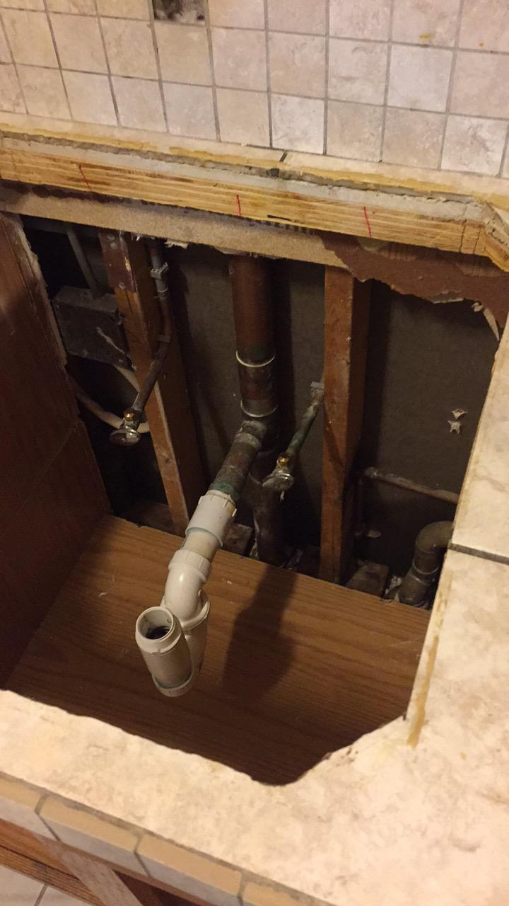 When we arrived at the home in Washington, New Jersey, we noticed the base cabinet which holds the kitchen sink was rotten on the bottom. The sink faucet was faulty and there was a slow drip in the back of the cabinet. The Homeowner wanted us to try to save the face of the cabinets (which we were able to). The flooring in front of the cabinet was dry. In the basement the sheathing subfloor was wet beneath the cabinet above. The Team begin by setting up containment in the basement as well as one in the kitchen. A dehumidifier, air scrubber and a fan were put in the containment of the basement to begin dry out from underneath the kitchen. A dehumidifier and air scrubber were also placed in the kitchen to start stabilizing. They removed the insulation in the affected area of the basement. Contents in the basement were moved to clear way for containment. The Team removed the affected areas, including cabinets. They had to cut out a small portion of the subfloor, due to rotting. They removed some drywall from the back-wall due to mold. The cabinet next to the affected had some residual mold but no rot. The Team scrubbed and sterilized the affected areas clean. They monitored the areas until dry standards were met. The Homeowner was pleased we could work with their insurance, State Farm, directly.