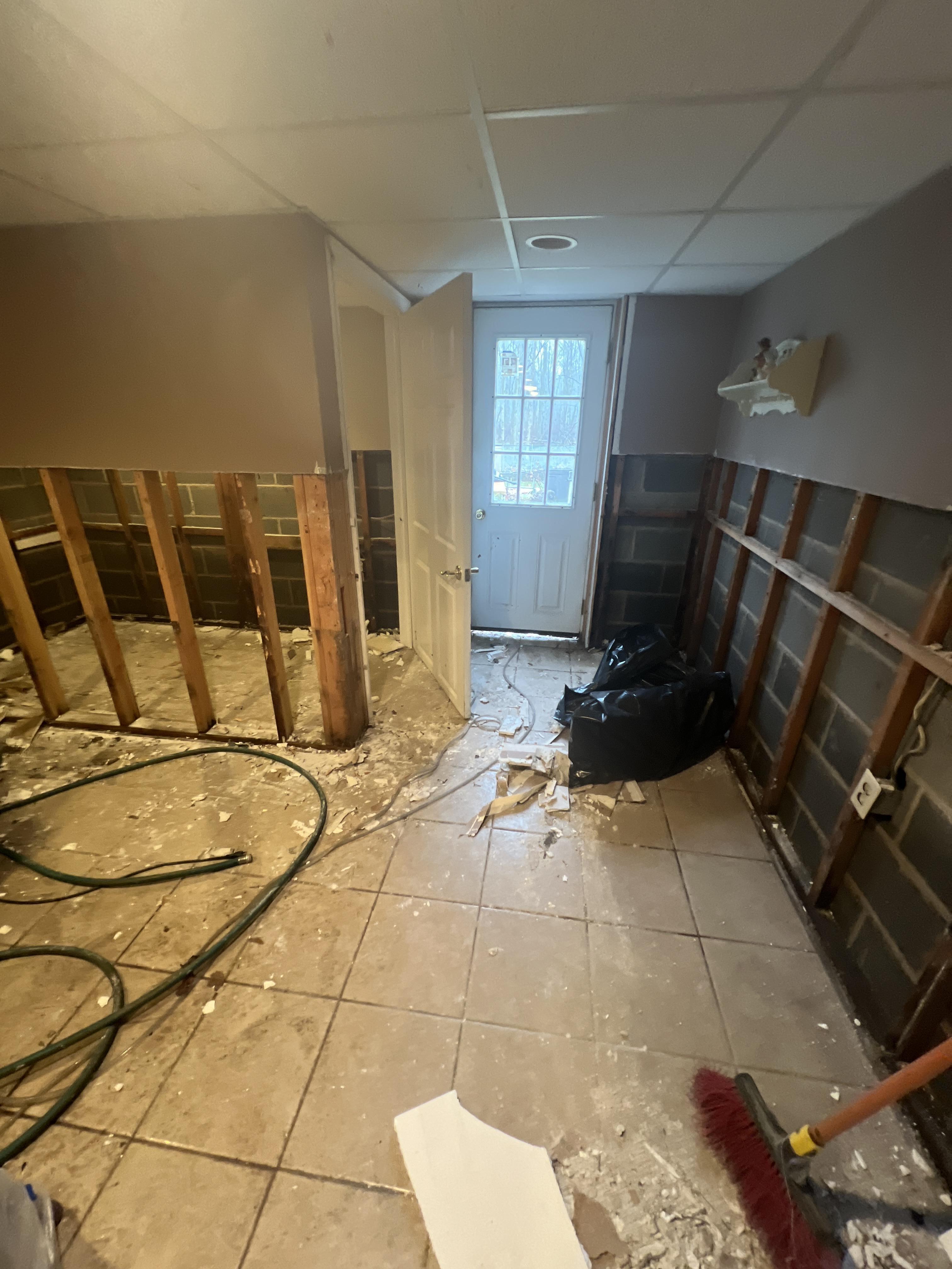 This Kinnelon water damage project also included sanitizing the entire basement to prevent mold development and secondary damage. The sump pump failure was documented as the cause of loss, which was accepted by the homeowner's insurance and covered under her flood endorsement. Water damage cleanup services included anti-microbial treatments and installation of a temporary backup sump system to prevent recurrence. The wood framing in the Kinnelon basement was dried and treated before rebuilding could begin. Cases like this highlight how quickly a sump pump failure in Kinnelon can escalate into widespread basement water damage requiring professional restoration.