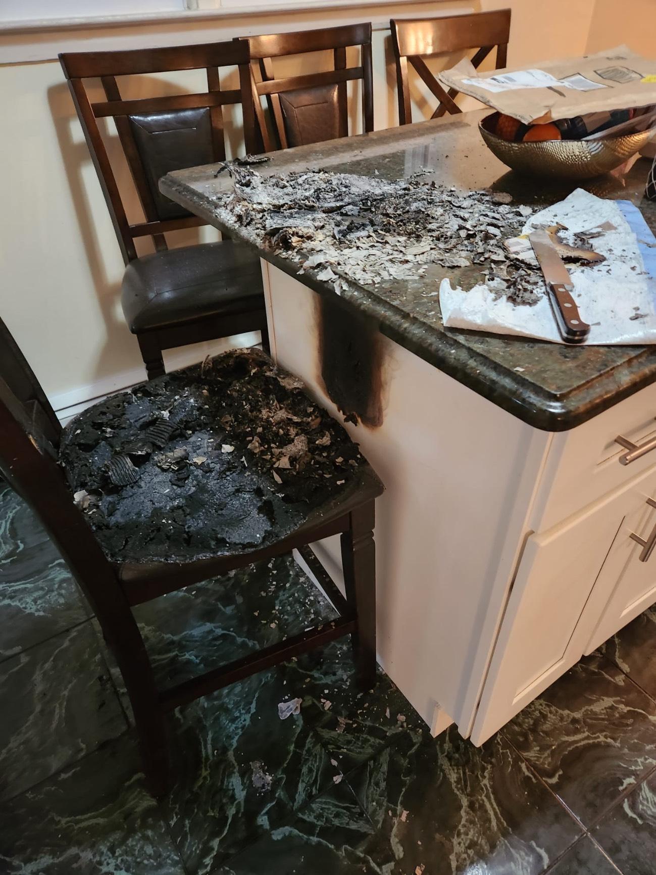 Homeowner Allison K. reported a small kitchen fire in her Bridgewater, NJ home after a toaster oven overheated and ignited the cabinet above it. Though the fire was contained quickly, it scorched the cabinetry, produced heavy smoke, and spread soot across nearby walls, ceilings, and appliances. Our fire damage restoration team arrived promptly to assess the smoke and soot damage, remove the fire-damaged cabinet, and begin smoke odor removal procedures. Thermal fogging and HEPA filtration were used to treat the affected area, ensuring no lingering smoke particles remained. The surrounding drywall and backsplash required detailed cleaning due to soot staining and smoke residue.