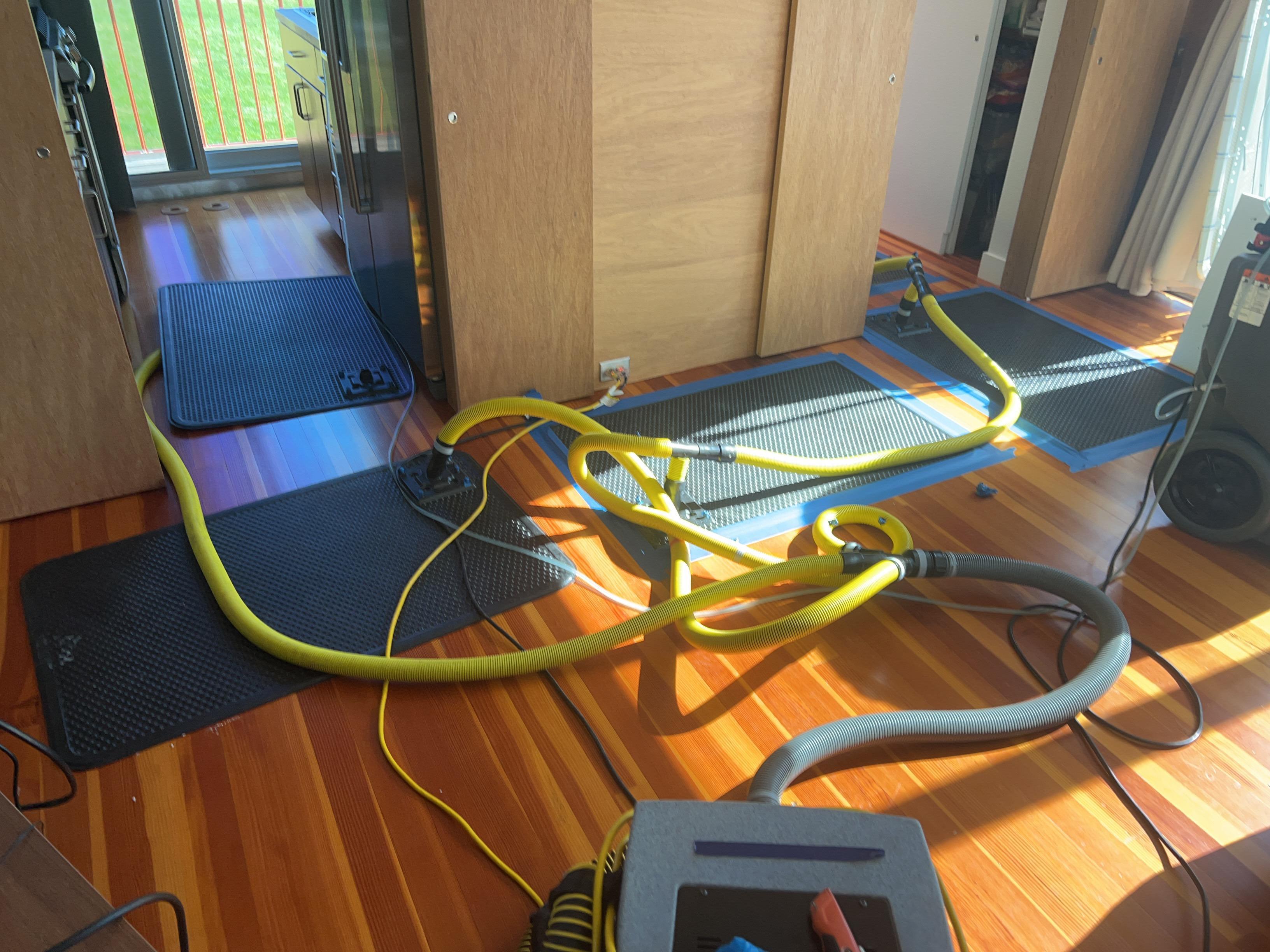 The Drying & Dehumidification process begins by setting up drying chambers, which isolate affected areas to create an optimal drying environment. Industrial-grade low-grain refrigerant (LGR) dehumidifiers and desiccant dehumidifiers are strategically placed to remove excess moisture from the air, accelerating the drying process while preventing secondary water damage and mold growth. High-velocity air movers are used to enhance evaporation, while moisture meters and thermal imaging cameras monitor progress to ensure hidden moisture is eliminated. By maintaining controlled humidity levels and adhering to industry-standard drying protocols, we guarantee thorough dehumidification that structural weakening, warping, and microbial growth has been prevented. Our equipment is not removed until the property meets the Dry Standard, ensuring a safe and complete restoration.