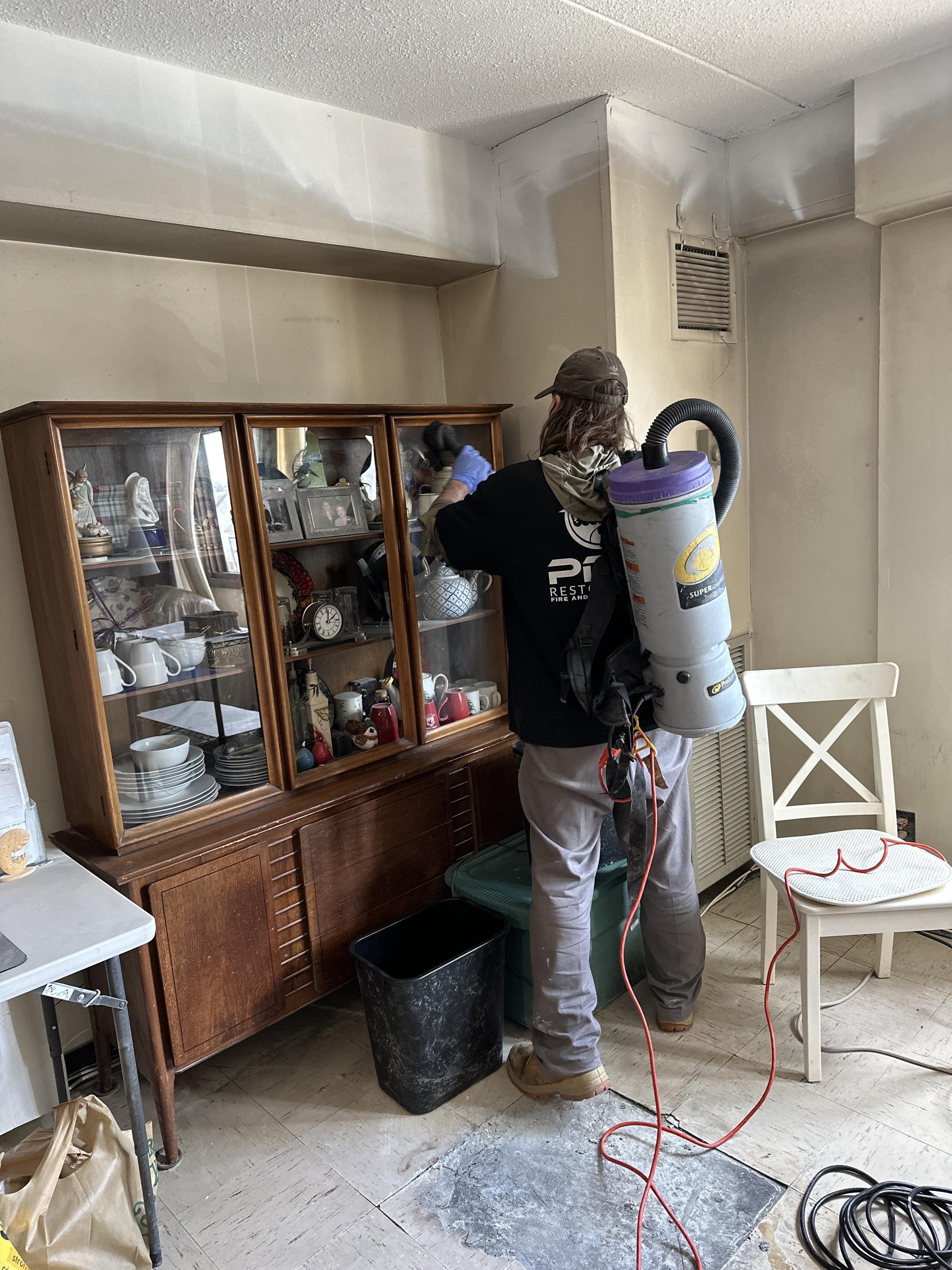 Our process for fire damage restoration starts with a thorough inspection to assess the full extent of fire, smoke, and soot damage to your home or business. Our IICRC-certified technicians document everything with photos and moisture readings to support your insurance claim and ensure nothing is missed. We immediately set up HEPA-filtered air scrubbers and hydroxyl generators to begin removing soot particles and neutralizing smoke odors. Our team deep-cleans all affected surfaces—including walls, ceilings, contents, and HVAC systems—to restore safe air quality throughout your property. We handle the proper disposal of contaminated food and medications, sanitize every impacted area with hospital-grade cleaners, and replace all HVAC filters. With our No Smoke Odor Guarantee, we won’t remove our equipment until your home is free of smoke odors.