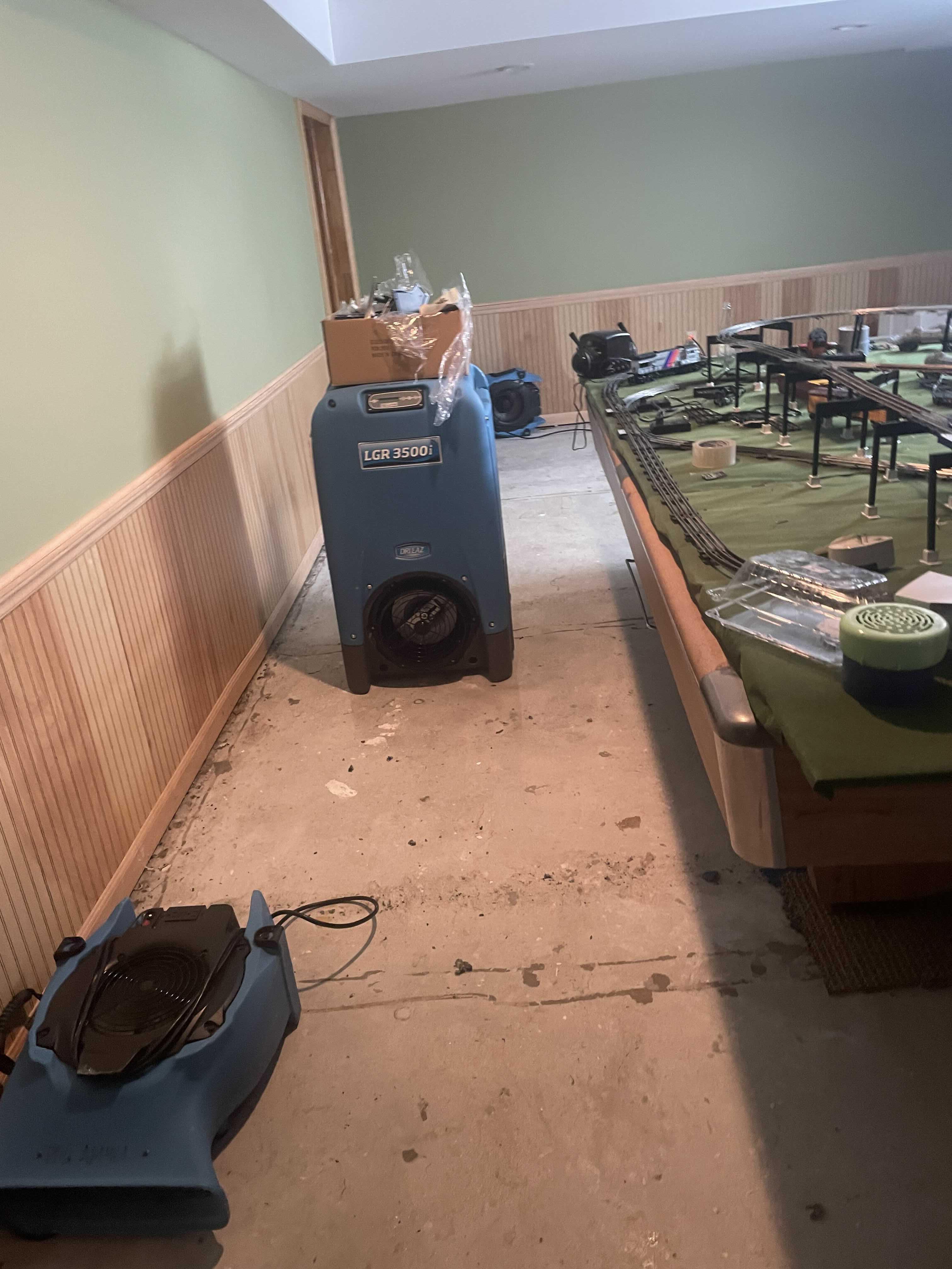 The Drying & Dehumidification process begins by setting up drying chambers, which isolate affected areas to create an optimal drying environment. Industrial-grade low-grain refrigerant (LGR) dehumidifiers and desiccant dehumidifiers are strategically placed to remove excess moisture from the air, accelerating the drying process while preventing secondary water damage and mold growth. High-velocity air movers are used to enhance evaporation, while moisture meters and thermal imaging cameras monitor progress to ensure hidden moisture is eliminated. By maintaining controlled humidity levels and adhering to industry-standard drying protocols, we guarantee thorough dehumidification that structural weakening, warping, and microbial growth has been prevented. Our equipment is not removed until the property meets the Dry Standard, ensuring a safe and complete restoration.